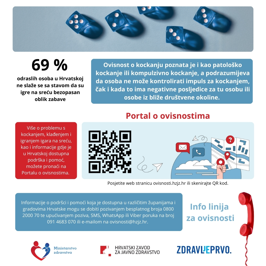 U okviru kampanje Ministarstvo zdravstva i HZJZ skreću pozornost na još jedan oblik ovisnosti – ovisnost o kockanju.